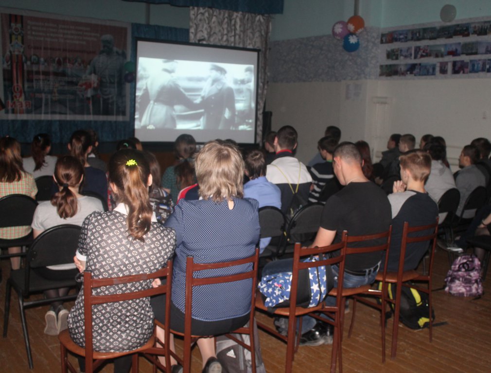 27 апреля в школах нашего района были организованы кинозалы для просмотра фильмов военно-патриотической направленности. Учащиеся с ветеранами, педагогами смотрели и обсуждали фильмы о Войне. Всего в Акции приняли участие около 1387 школьников, 7 ветеранов труда, 67 педагогов.